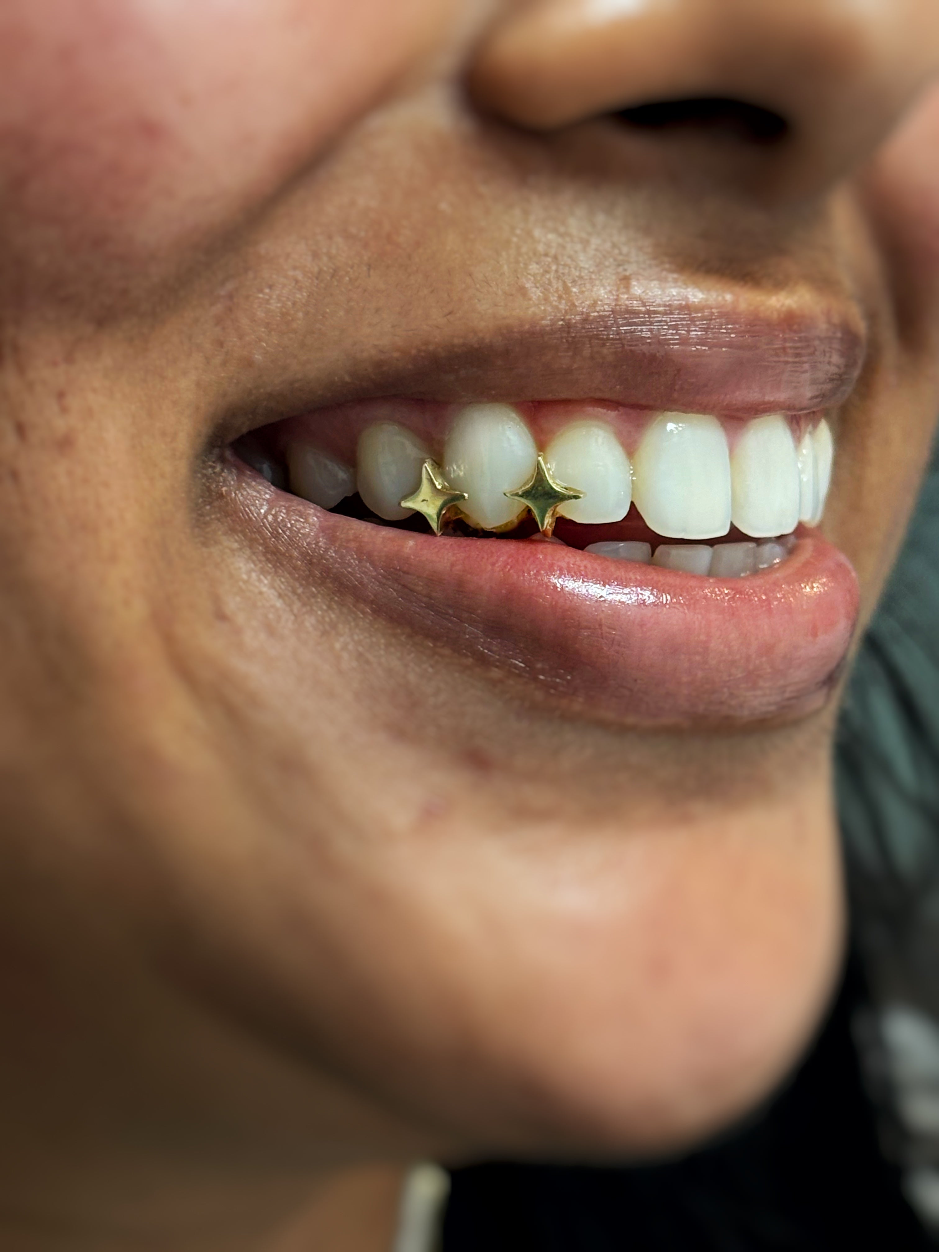 Introducing the CAPPD 2 Stars Grillz—a dazzling addition to your style. Featuring two solid gold stars on either side of one tooth, these grillz ensure your smile shines with unparalleled vibes.