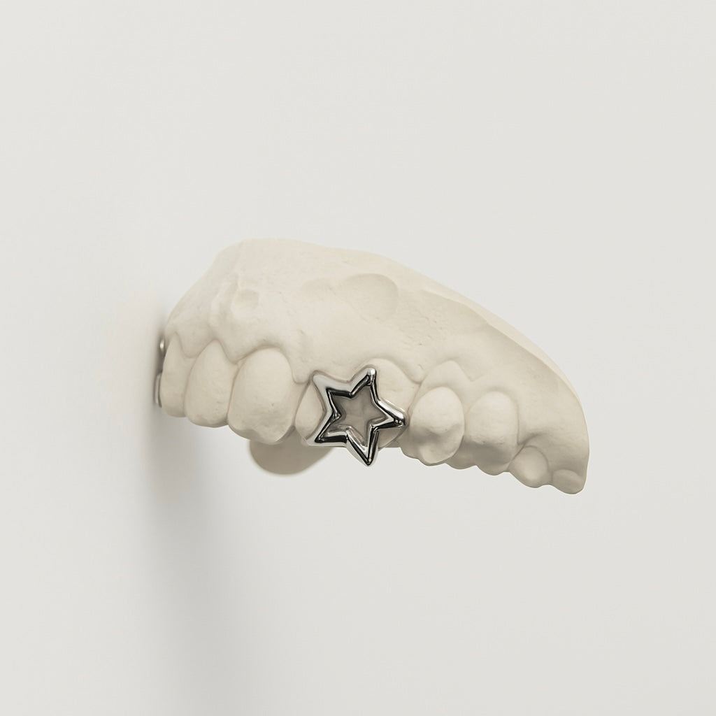 Introducing the CAPPD Big Star Grillz—where design meets celestial brilliance. Crafted in 925 sterling silver, this unique piece features a rigid-style star that elegantly covers multiple teeth, ensuring your smile shines with otherworldly vibes.