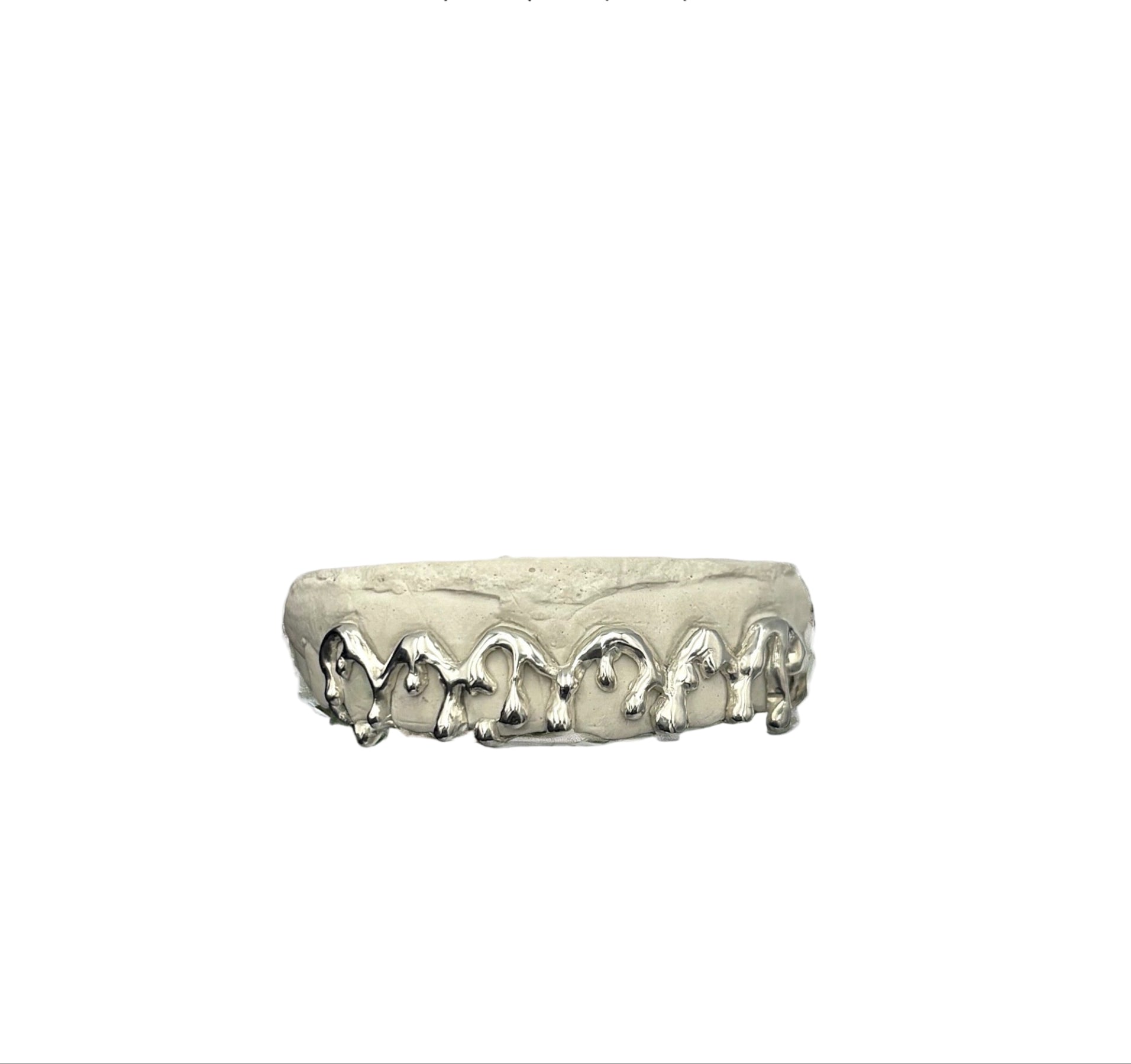 Organic Drip style grillz, for 6, or 8 teeth. These custom-fit grillz are made with premium silver, giving you a high-end look that's sure to turn heads.